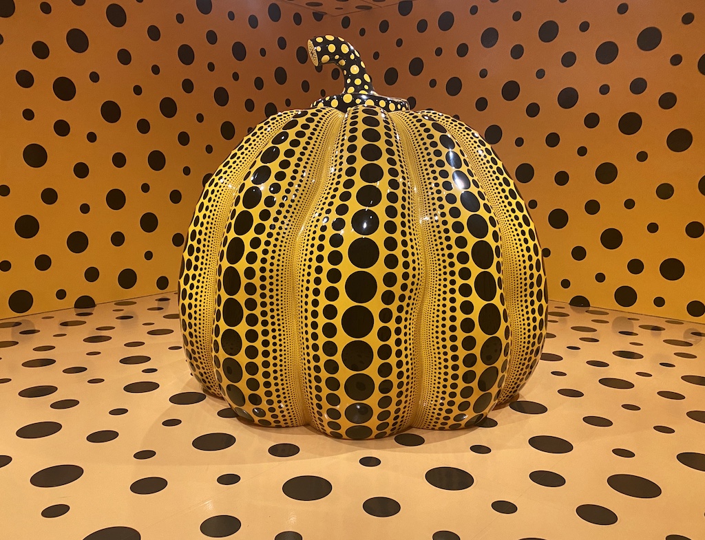 A lot of us had been anticipating One with Eternity: Yayoi Kusama in the Hirshhorn Collection for a long time. The exhibit was originally scheduled to start running in spring of 2020, but, well, we all know what happened. It finally opened April 1, 2022, and the wait for it, especially after all that we and the world went through, made it even more exciting, more vivid, and more meaningful now.